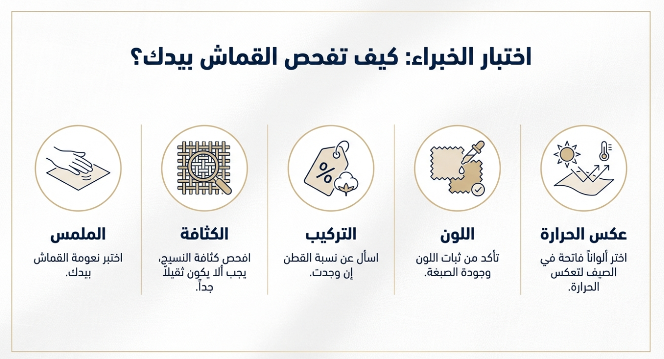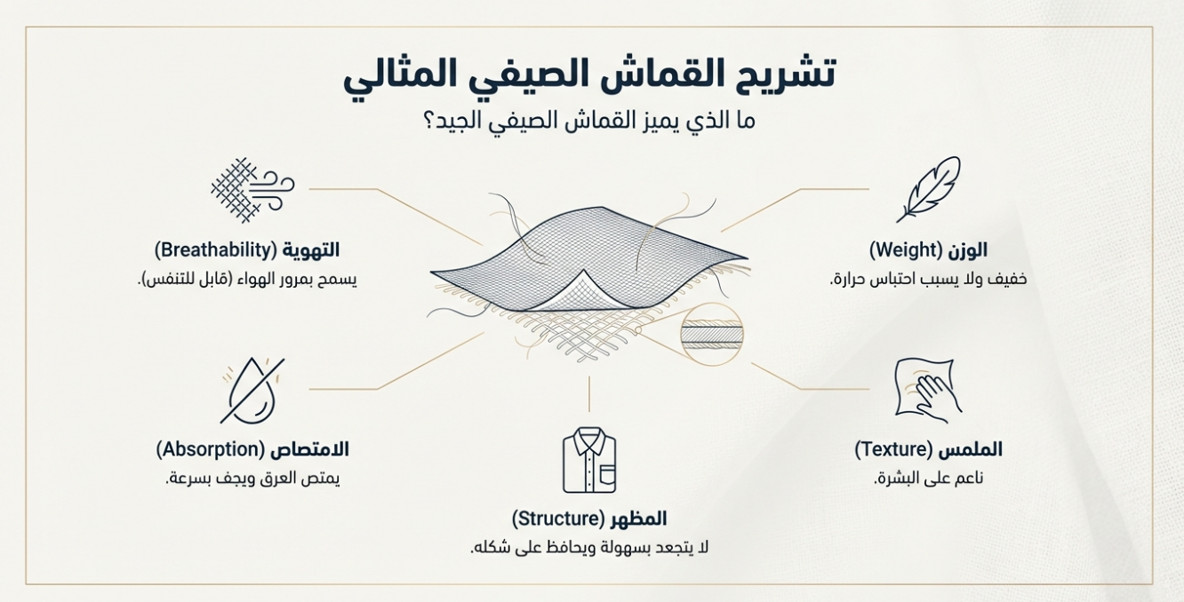 قبل الحديث عن بلد المنشأ، يجب أن نعرف مواصفات القماش الصيفي الجيد: